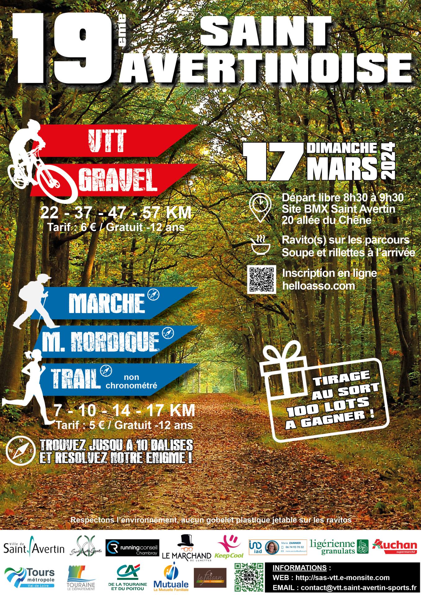 L'inscription en ligne est à privilégier : https://www.helloasso.com/associations/sas-vtt/evenements/saint-avertinoise-2024. Inscription sur place possible.